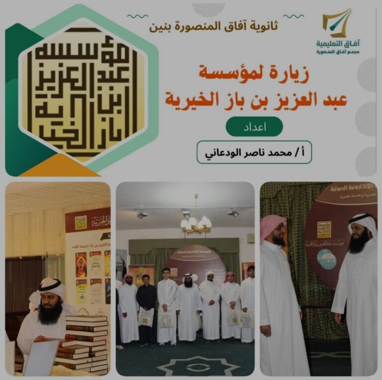 ضمن انشطة المؤسسة الهادفة الى التواصل مع جميع مؤسسات المجتمع المدني لترسيخ قيم الوسطية والاعتدال والقدوة الحسنة قام قسم العلاقات العامة بتنظيم وتنسيق زيارة لطلاب من ثانوية آفاق المنصورة الأهلية إلى مؤسسة الشيخ عبد العزيز بن باز الخيرية للاطلاع على معرض تراث سماحة الشيخ عبد العزيز بن باز -رحمه الله- والذي يوضح مراحل العمل في المؤسسة وانشطتها وقد استمع الطلاب الى نبذه مختصرة عن سيرة سماحته رحمه الله من احد طلاب الشيخ والذي ركز فيها على منهج الشيخ رحمه الله في وحدة الصف ونبذ الفرقة والخلاف وتم في نهاية اللقاء توزيع بعض منتجات المؤسسة على الطلاب .