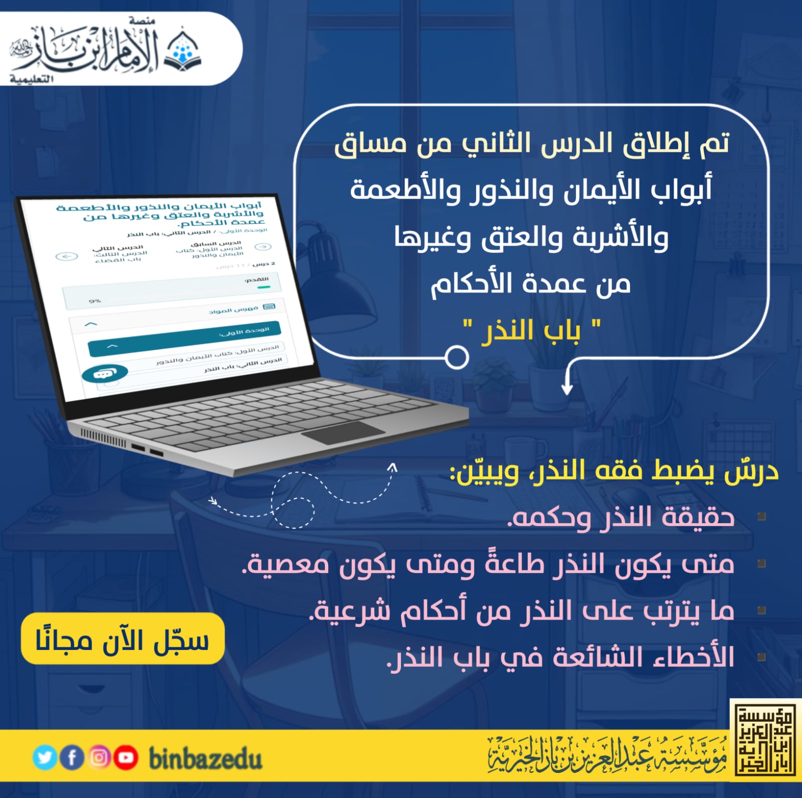 تم إطلاق الدرس الثاني من مساق أبواب الأيمان والنذور والأطعمة والأشربة والعتق وغيرها - من عمدة الأحكام.